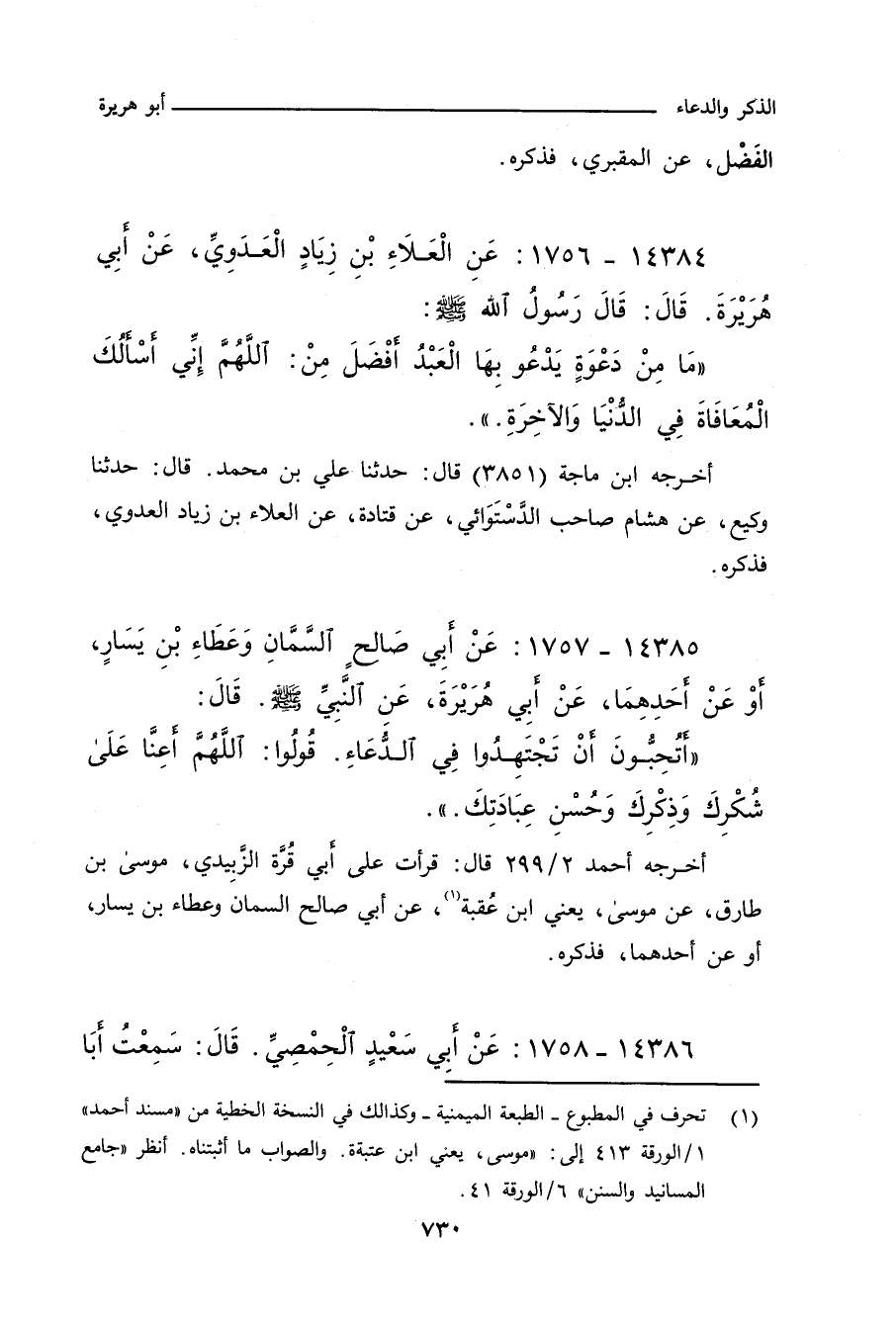١٤٣٨٤ - عَنِ الْعَلَاءِ بْنِ زِيَادٍ الْعَدَوِيِّ، عَنْ أَبِي هُرَيْرَةَ، قَالَ: قَالَ رَسُولُ اللهِ صلى الله عليه وسلم: