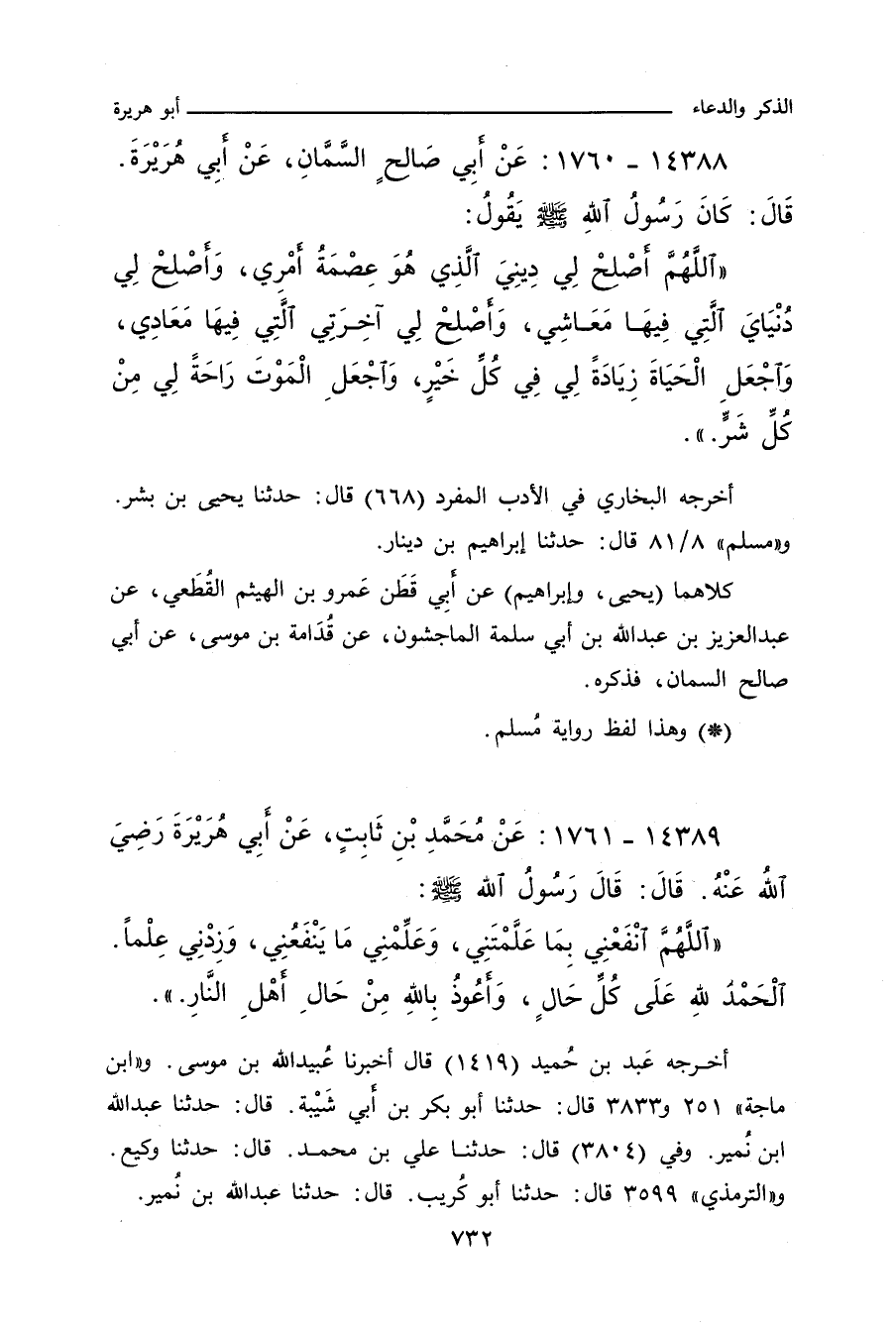 ١٤٣٨٨ - عَنْ أَبِي صَالِحٍ السَّمَّانِ، عَنْ أَبِي هُرَيْرَةَ، قَالَ: كَانَ رَسُولُ اللهِ صلى الله عليه وسلم يَقُولُ: