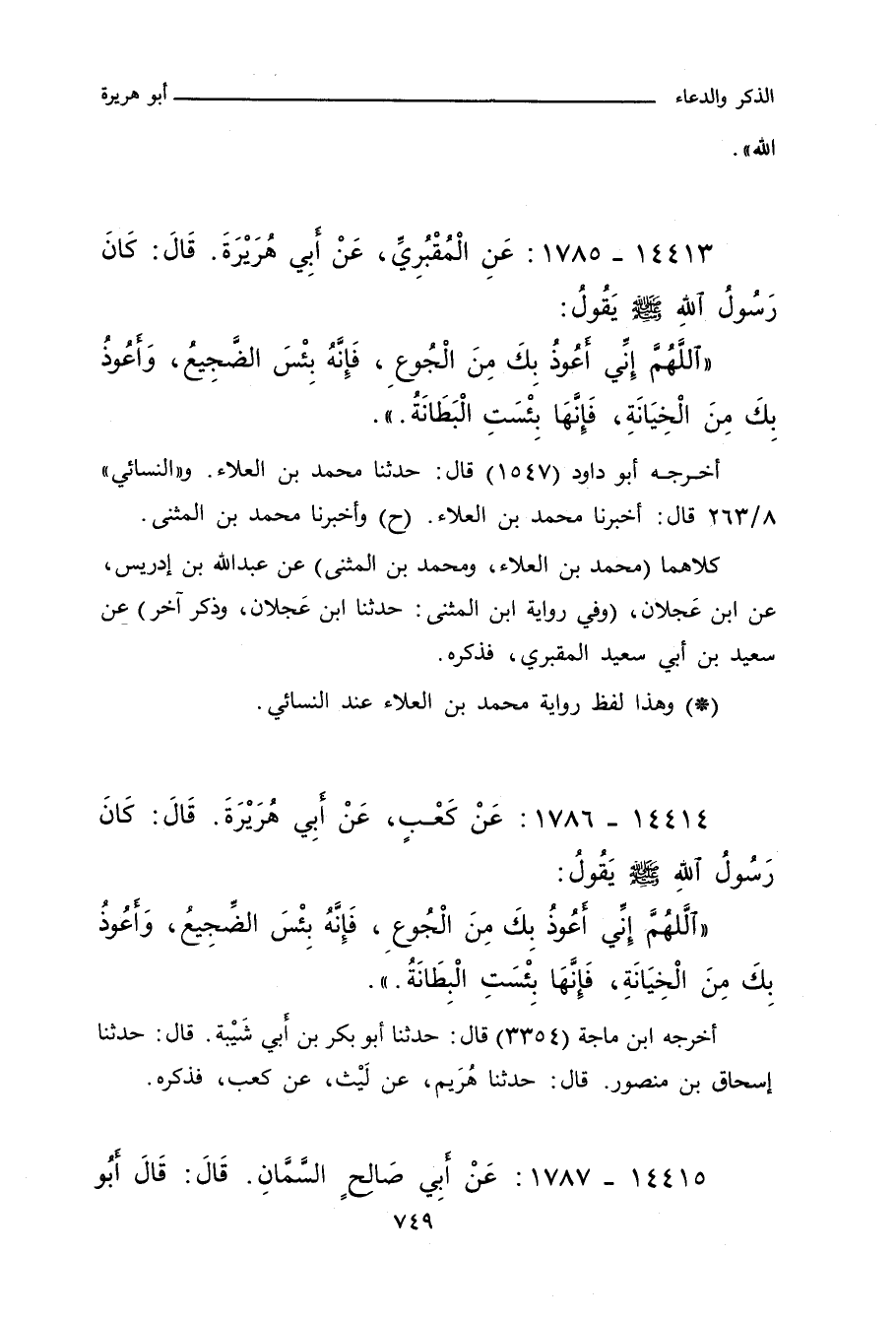 ١٤٤١٤ - عَنْ كَعْبٍ، عَنْ أَبِي هُرَيْرَةَ، قَالَ: كَانَ رَسُولُ اللهِ صلى الله عليه وسلم يَقُولُ: