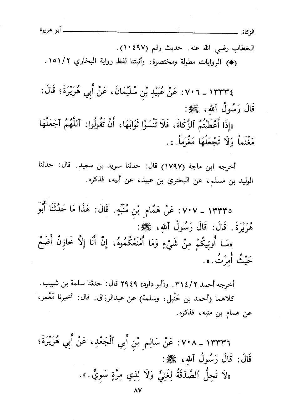 ١٣٣٣٥ - عَنْ هَمَّامِ بْنِ مُنَبِّهٍ، قَالَ: هَذَا مَا حَدَّثَنَا بِهِ أَبُو هُرَيْرَةَ، قَالَ: قَالَ رَسُولُ اللهِ صلى الله عليه وسلم: