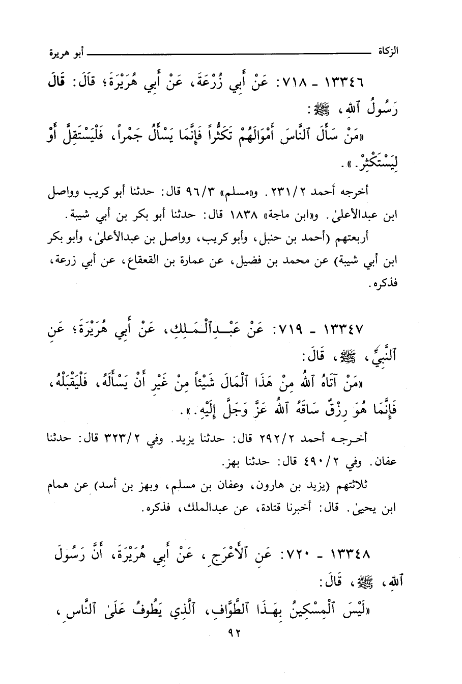 ١٣٣٤٨ - عَنِ الأَعْرَجِ، عَنْ أَبِي هُرَيْرَةَ، أَنَّ رَسُولَ اللهِ صلى الله عليه وسلم قَالَ: