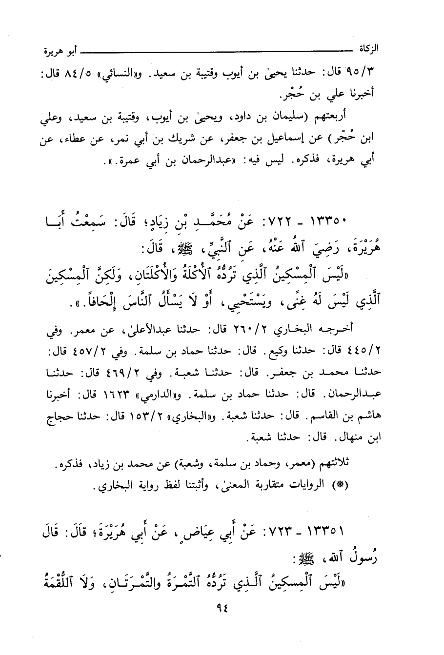ـ وفي رواية: لَيْسَ الْمِسْكِينُ الطَّوَّافَ عَلَيْكُمْ، الَّذِي تَرُدُّهُ اللُّقْمَةُ وَاللُّقْمَتَانِ، وَلَكِنَّ الْمِسْكِينَ الْمُتَعَفِّفُ.