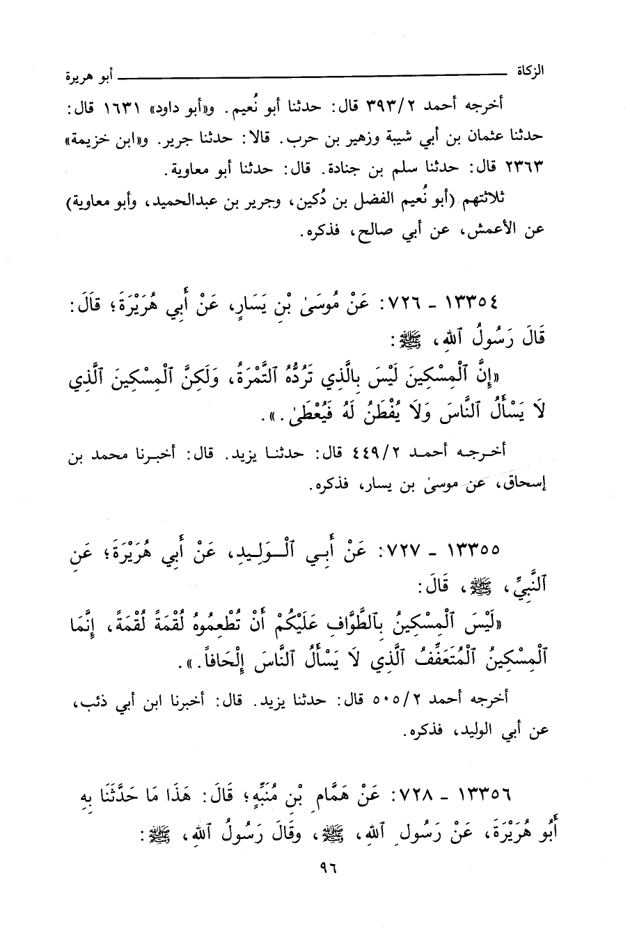 ١٣٣٥٥ - عَنْ أَبِي الْوَلِيدِ، عَنْ أَبِي هُرَيْرَةَ، عَنِ النَّبِيِّ صلى الله عليه وسلم، قَالَ:
