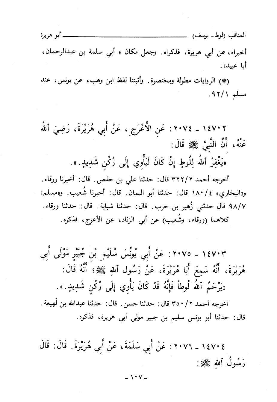 ١٤٧٠٢ - عَنِ الأعْرَجِ، عَنْ أَبِي هُرَيْرَةَ، رَضِيَ الله عَنْهُ، أِنَّ النَّبي صلى الله عليه وسلم قَالَ: