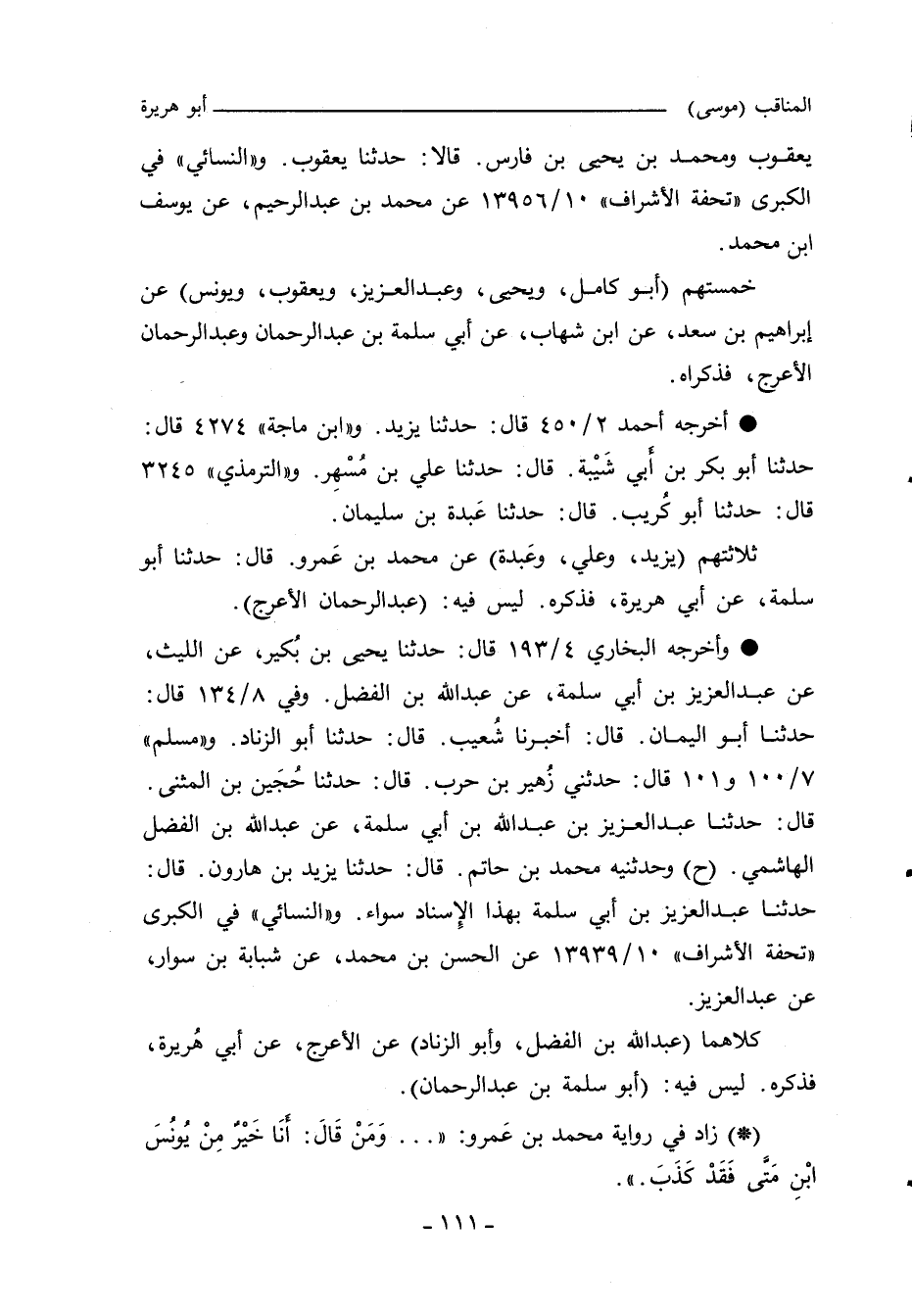 خمستهم (أبو كامل، ويَحيى، وعبد العزيز، وبعقوب، ويونس) عن إبراهيم بن سعد، عن ابن شهاب، عَنْ أَبِي سلمة بن عبد الرحمن وعبد الرحمن الأعرج، فذكراه.