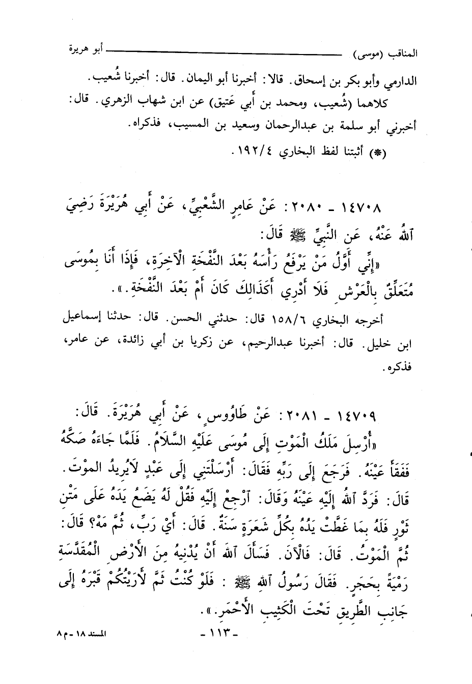 ١٤٧٠٨ - عَنْ عَامِرٍ عَنْ أَبِي هُرَيْرَةَ، رَضِيَ اللَّهُ عَنْهُ، عَنِ النَّبِيِّ صلى الله عليه وسلم قَالَ: