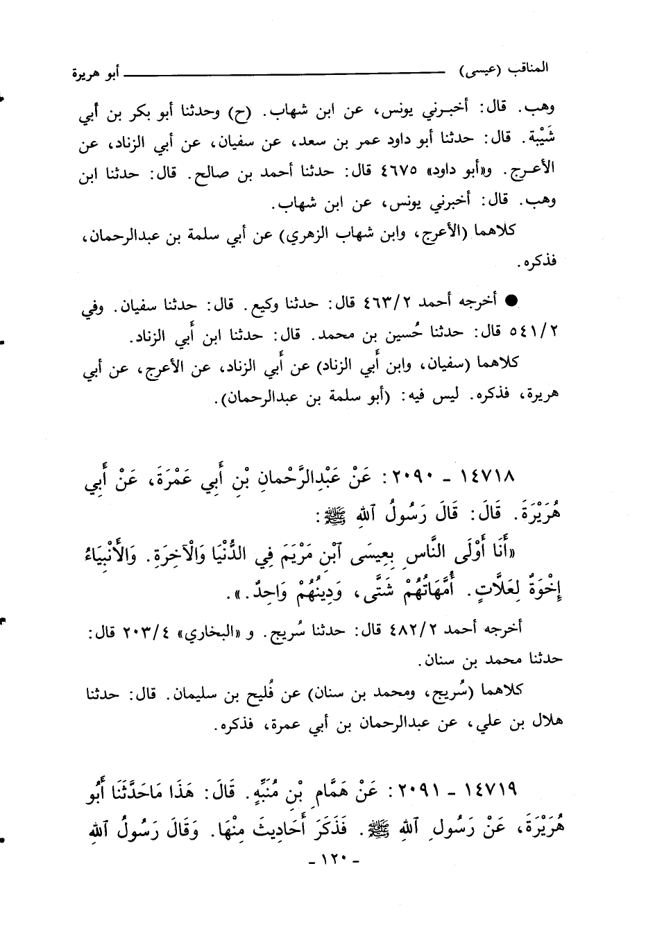 أَنَا أَوْلَى النَّاسِ بِعِيسَى ابْنِ مَرْيَمَ فِى الدُّنْيَا وَالآخِرَةِ، وَالأَنْبِيَاءُ إِخْوَةٌ لِعَلَاّتٍ، أُمَّهَاتُهُمْ شَتَّى، وَدِينُهُمْ وَاحِدٌ.