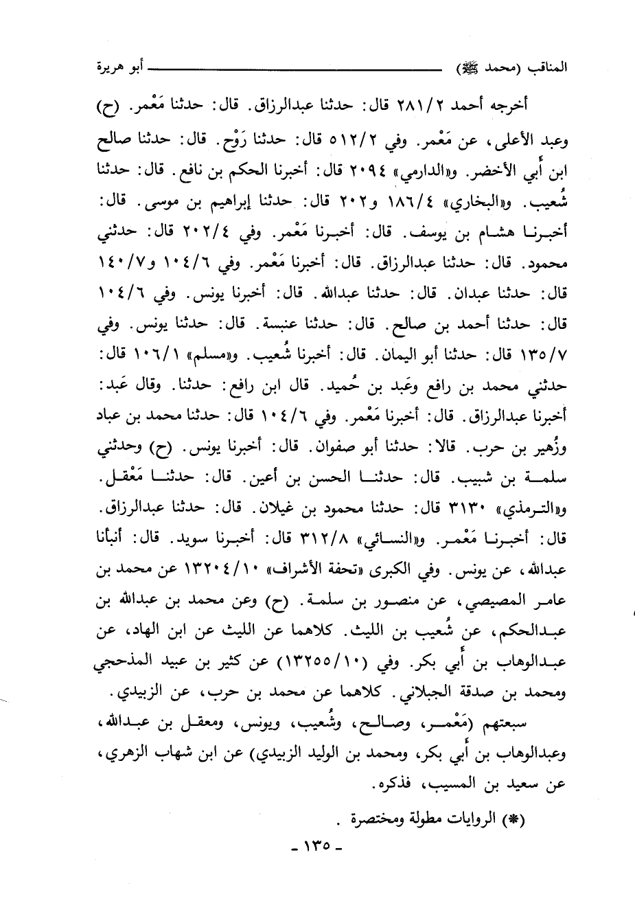 سبعتهم (مَعْمر، وصالح، وشُعيب، ويونس، ومعقل بن عبد الله، وعبد الوهاب بن أبي بكر، ومحمد بن الوليد الزبيدي) عن ابن شهاب الزهري، عن سعيد بن المسيمب، فذكره.