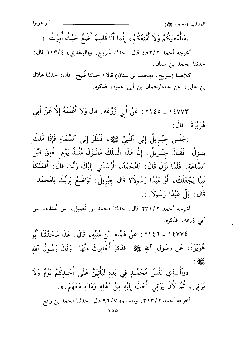 ١٤٧٧٤ - عَنْ هَمَّامِ بْنِ مُنَبِّهٍ قَالَ هَذَا مَا حَدَّثَنَا أَبُو هُرَيْرَةَ عَنْ رَسُولِ اللهِ صلى الله عليه وسلم. فَذَكَرَ أَحَادِيثَ مِنْهَا وَقَالَ رَسُولُ اللهِ صلى الله عليه وسلم