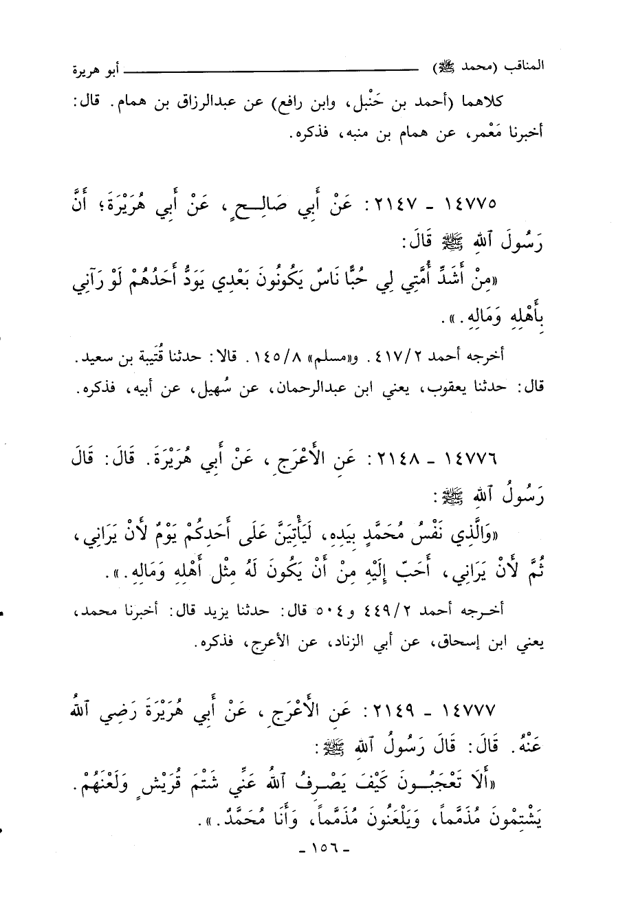 ١٤٧٧٧ - عَنِ الأَعْرَجِ عَنْ أَبِي هُرَيْرَةَ، رَضِيَ اللَّهُ عَنْهُ، قَالَ: قَالَ رَسُولُ اللهِ صلى الله عليه وسلم