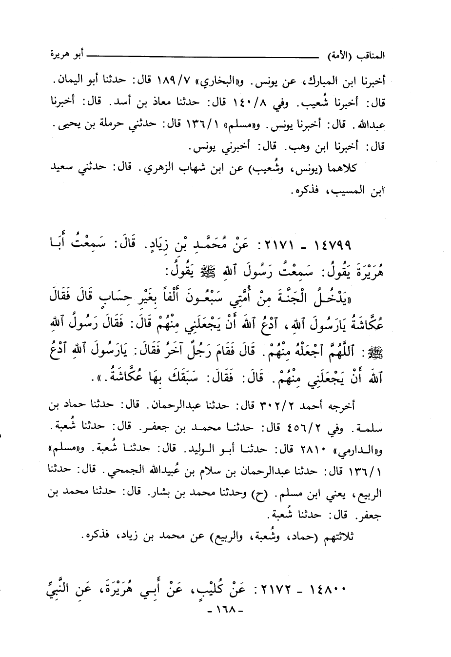 يَدْخُلُ الْجَنَّةَ مِنْ أُمَّتِى سَبْعُونَ أَلْفًا بِغَيْرِ حِسَابٍ. قَالَ فَقَالَ عُكَّاشَةُ يَا رَسُولَ اللهِ ادْعُ اللَّهَ أَنْ يَجْعَلَنِى مِنْهُمْ. قَالَ فَقَالَ رَسُولُ اللهِ صلى الله عليه وسلم اللَّهُمَّ اجْعَلْهُ مِنْهُمْ. قَالَ فَقَامَ رَجُلٌ آخَرُ فَقَالَ يَا رَسُولَ اللهِ ادْعُ اللَّهَ أَنْ يَجْعَلَنِى مِنْهُمْ. قَالَ فَقَالَ سَبَقَكَ بِهَا عُكَّاشَةُ.