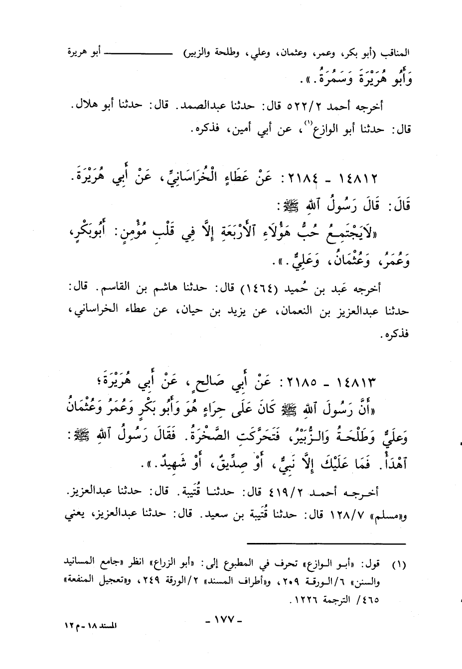 ١٤٨١٢ - عن عطاء الخراساني عَنْ أَبِي هُرَيْرَةَ قال قال رسول الله صلى الله عليه وسلم