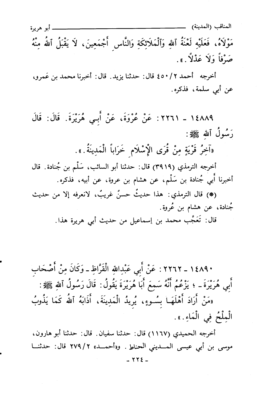 آخِرُ قَرْيَةٍ مِنْ قُرَى الإِسْلَامِ خَرَابًا الْمَدِينَةُ.