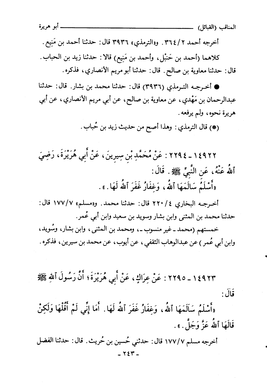 ١٤٩٢٢ - عَنْ مُحَمَّدٍ بْنِ سِيرِينَ عَنْ أَبِي هُرَيْرَةَ، رَضِيَ اللَّهُ عَنْهُ، عَنِ النَّبِيِّ صلى الله عليه وسلم قَالَ