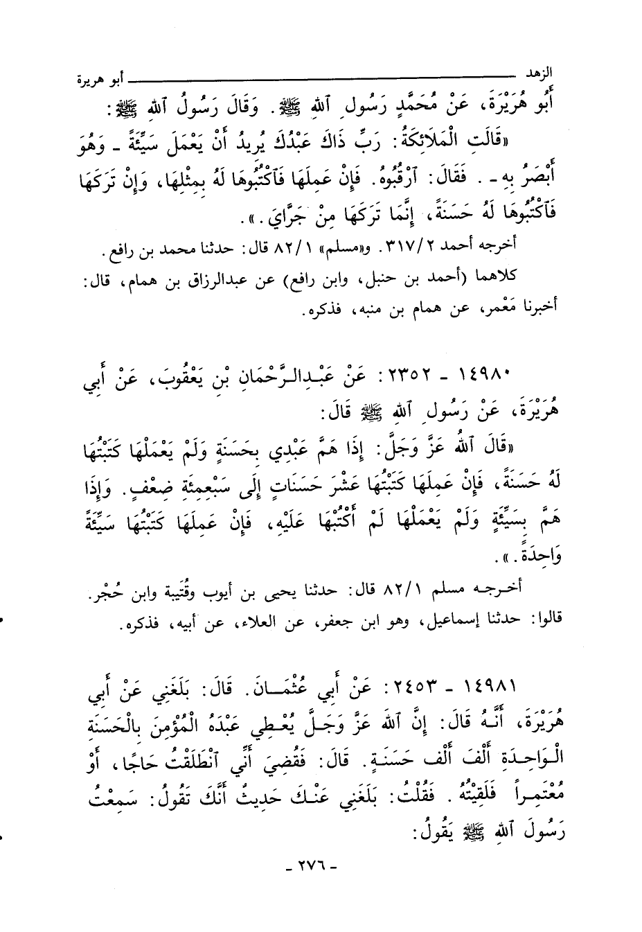 ١٤٩٨٠ - عَنْ عَبْدِ الرَّحْمَانِ عَنْ أَبِي هُرَيْرَةَ عَنْ رَسُولِ اللهِ صلى الله عليه وسلم قَالَ: