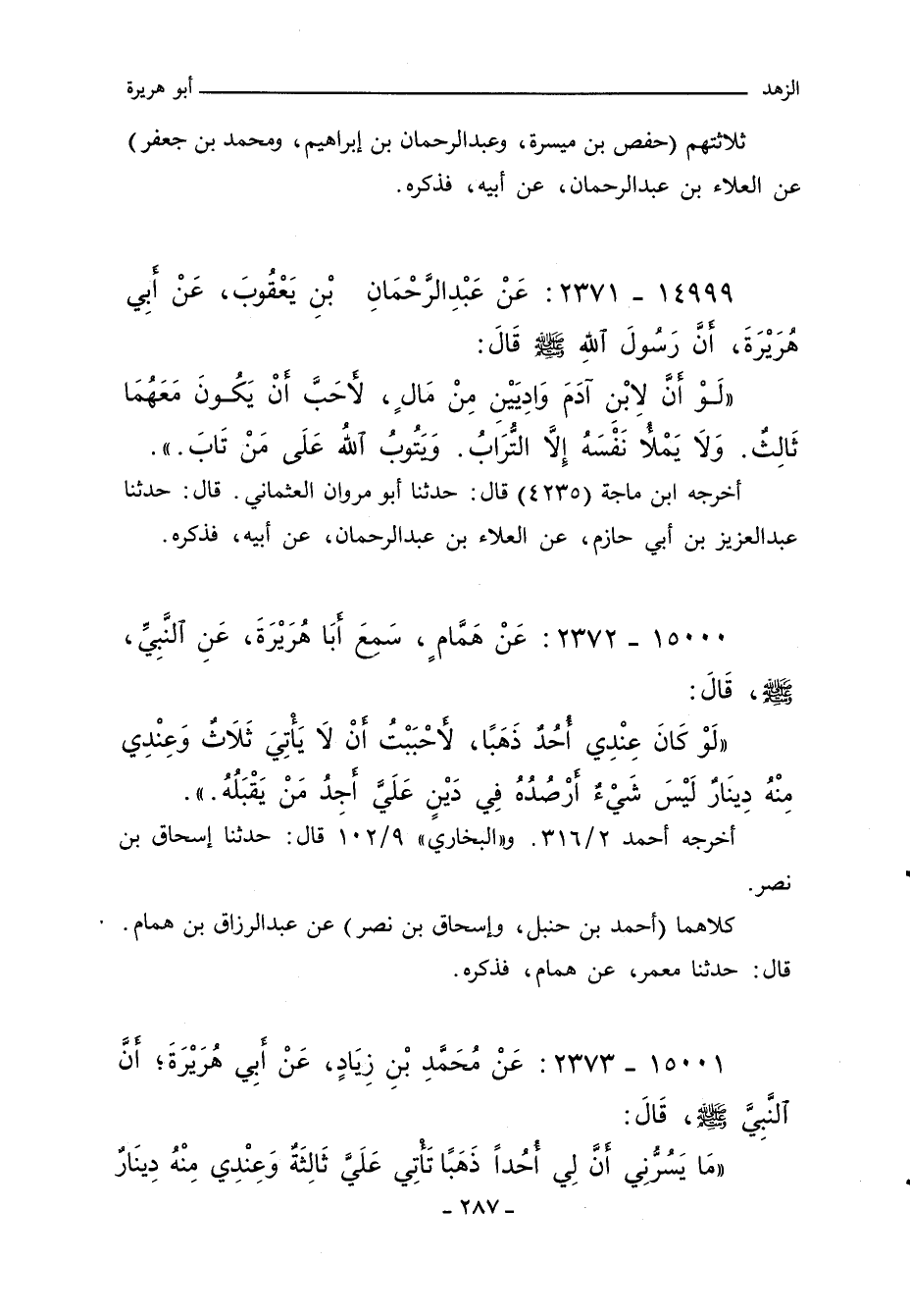 ١٥٠٠٠ - عَنْ هَمَّامٍ سَمِعَ أَبَا هُرَيْرَةَ عَنِ النَّبِيِّ صلى الله عليه وسلم قَالَ