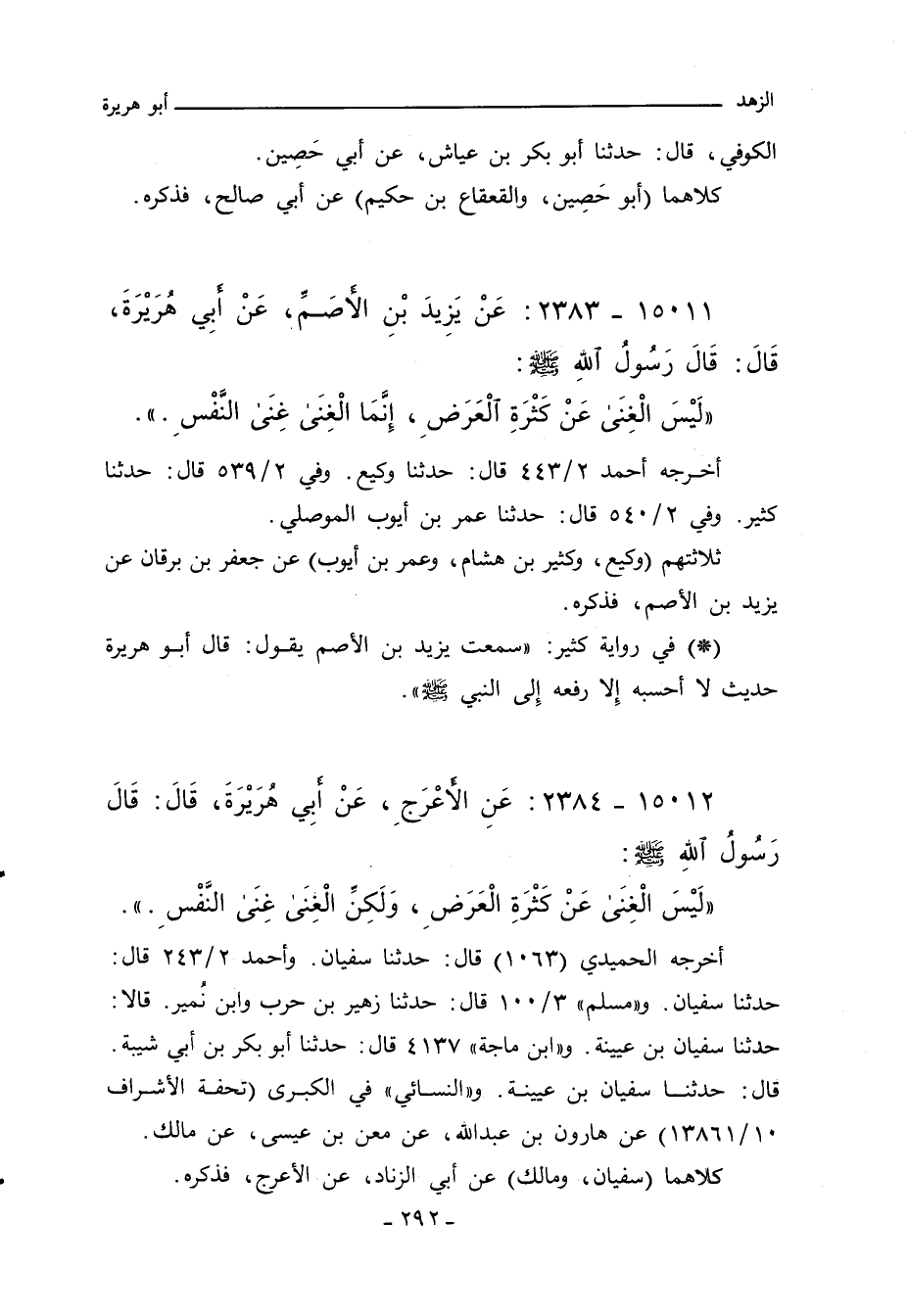 لَيْسَ الْغِنَى عَنْ كَثْرَةِ الْعَرَضِ إِنَّمَا الْغِنَى غِنَى النَّفْسِ.