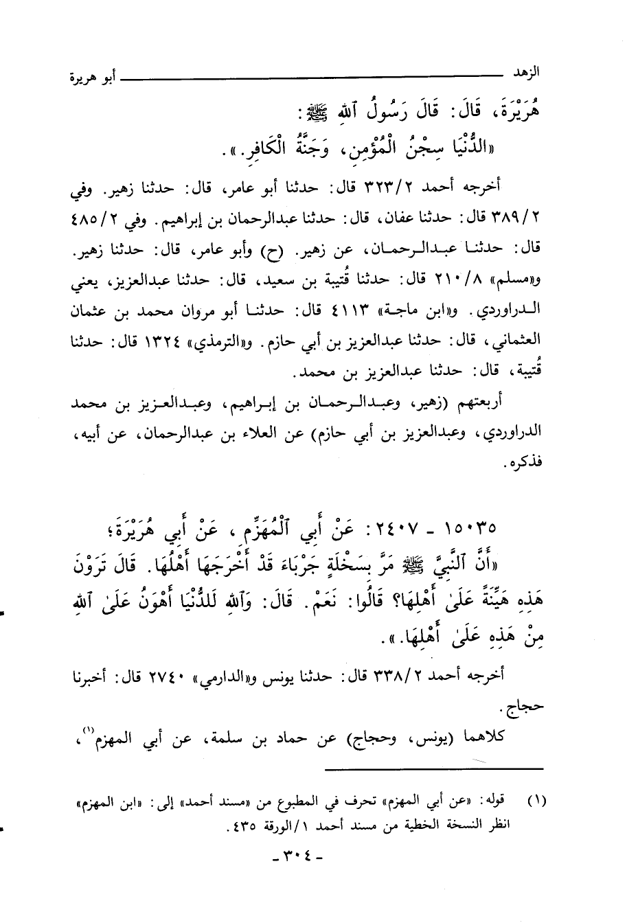 أخرجه أحمد ٢/ ٣٢٣ (٨٢٧٢) قال: حدَّثنا أبو عامر، قال: حدَّثنا زهير. وفي ٢/ ٣٨٩ (٩٠٤٣) قال: حدَّثنا عفان، قال: حدَّثنا عبد الرحمن بن إبراهيم. وفي ٢/ ٤٨٥ (١٠٢٩٣) قال: حدَّثنا عبد الرحمن، عن زهير. (ح) وأبو عامر، قال: حدَّثنا زهير. و"مسلم" ٨/ ٢١٠ قال: حدَّثنا قُتيبة بن سعيد، قال: حدَّثنا عبد العزيز، يعني الدراوردي. و"ابن ماجة" ٤١١٣ قال: حدَّثنا أبو مروان محمد بن عثمان العثماني، قال: حدَّثنا عبد العزيز بن أبي حازم. و"التِّرمِذي" ١٣٢٤ قال: حدَّثنا قُتيبة، قال: حدَّثنا عبد العزيز بن محمد.