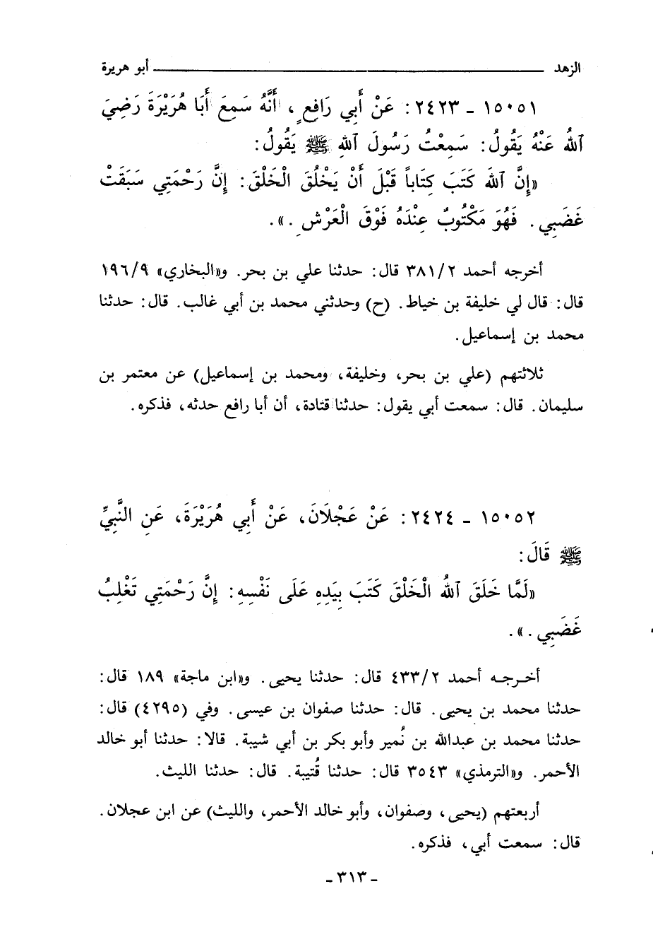 إِنَّ اللَّهَ كَتَبَ كِتَابًا قَبْلَ أَنْ يَخْلُقَ الْخَلْقَ إِنَّ رَحْمَتِى سَبَقَتْ غَضَبِى. فَهْوَ مَكْتُوبٌ عِنْدَهُ فَوْقَ الْعَرْشِ.