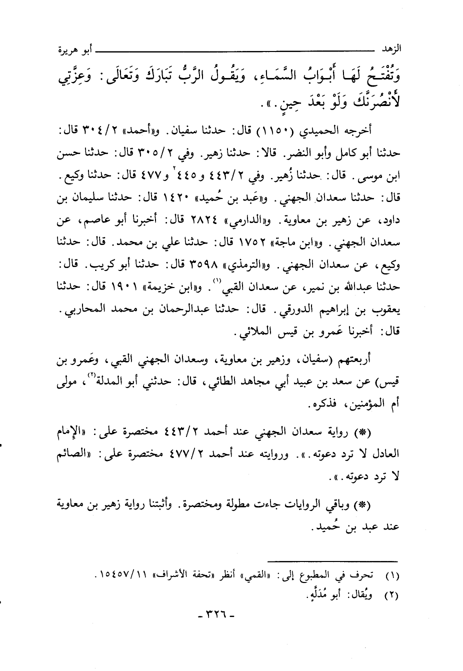 - رواية سعدان الجهني عند أحمد ٤٤٣/ ٢ مختصرة على: