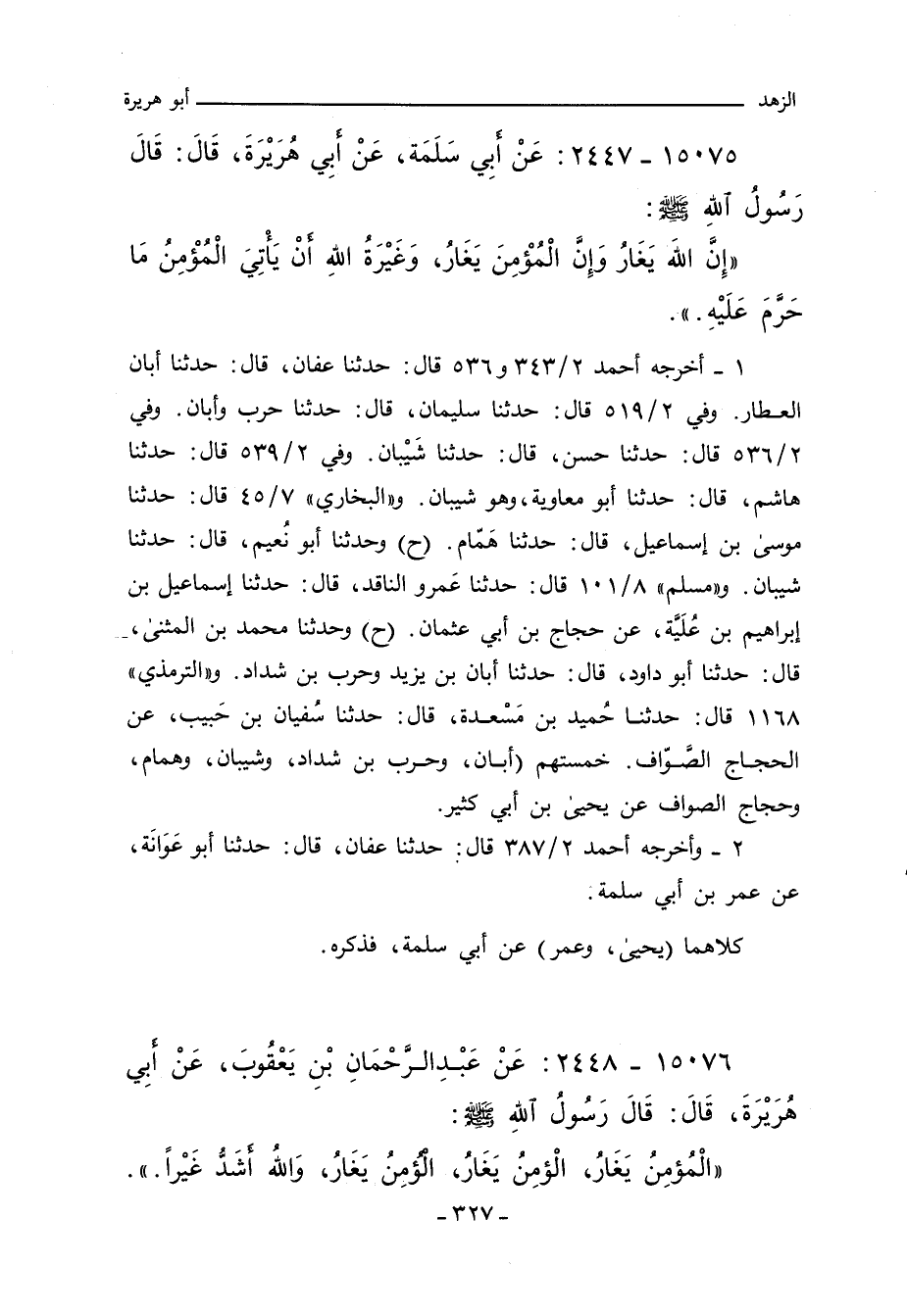 الْمُؤْمِنُ يَغَارُ الْمُؤْمِنُ يَغَارُ الْمُؤْمِنُ يَغَارُ وَاللَّهُ أَشَدُّ غَيْرًا.
