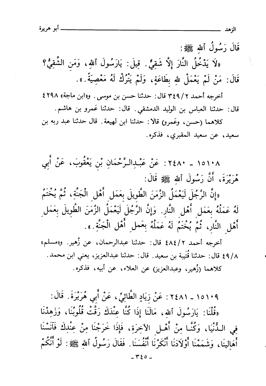 أخرجه أحمد ٢/ ٤٨٤ (١٠٢٩١) قال: حدَّثنا عبد الرحمن، عن زُهير. و"مسلم" ٨/ ٤٩ قال: حدَّثنا قًتَيبة بن سعيد، قال: حدَّثنا عبد العزيز، يعني ابن محمد.