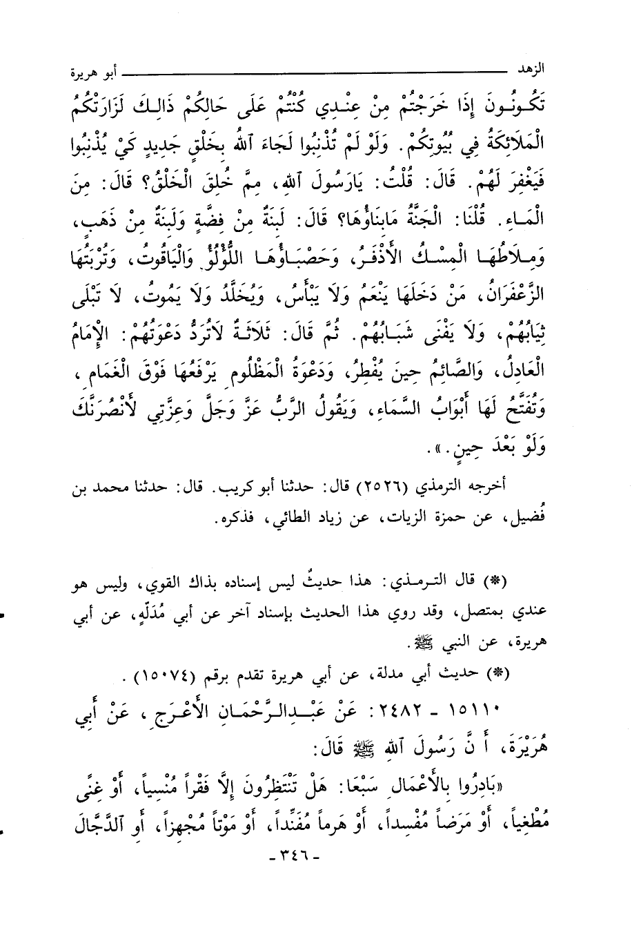 بَادِرُوا بِالأَعْمَالِ سَبْعًا هَلْ تَنْظُرُونَ إِلَاّ فَقْرًا مُنْسِيًا أَوْ غِنًى مُطْغِيًا أَوْ مَرَضًا مُفْسِدًا أَوْ هَرَمًا مُفَنِّدًا أَوْ مَوْتًا مُجْهِزًا أَوِ الدَّجَّالَ