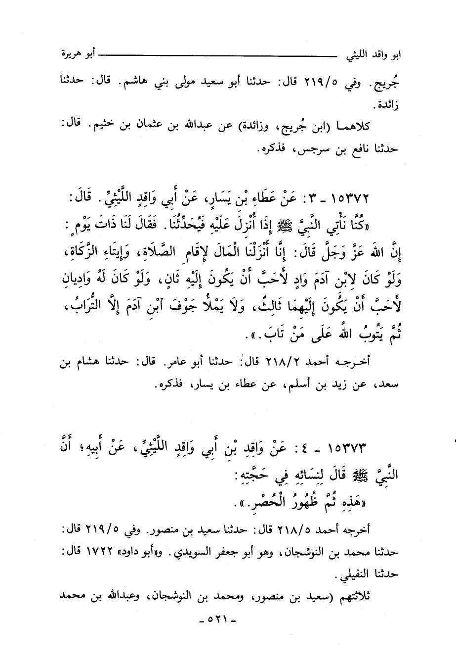 ١٥٣٧٢ - عَنْ عَطَاءِ بْنِ يَسَارٍ، عَنْ أَبِي وَاقِدٍ اللَّيْثِيِّ. قَالَ: