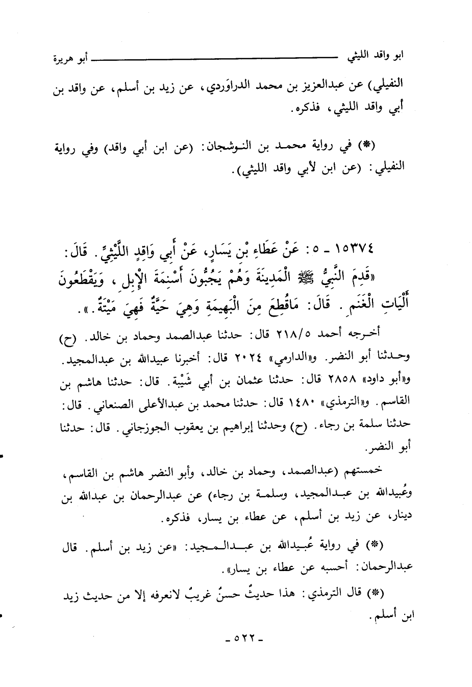 ١٥٣٧٤ - عَنْ عَطَاءِ بْنِ يَسَارٍ، عَنْ أَبِي وَاقِدٍ اللَّيْثِيِّ. قَالَ: