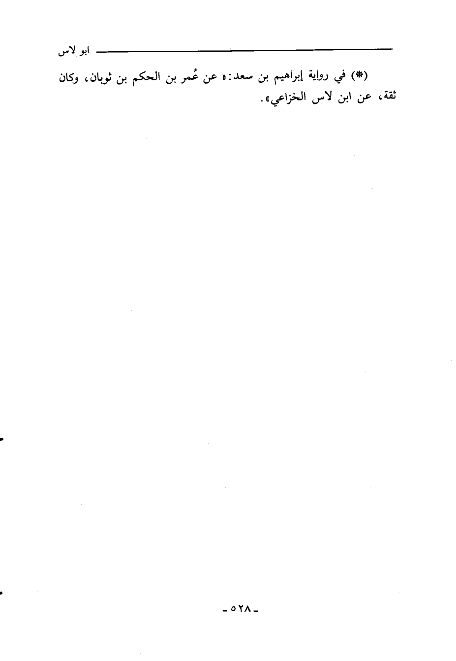 - في رواية إبراهيم بن سعد: عن عُمر بن الحكم بن ثوبان، وكان ثقة، عن ابن لاس الخزاعي.