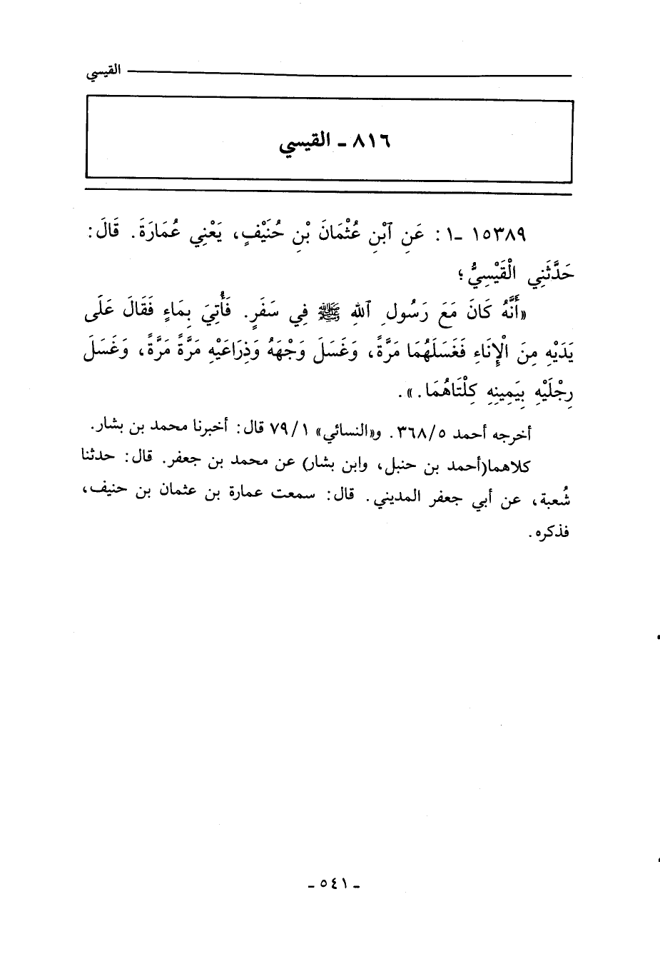 ١٥٣٨٩ - عَنِ ابْنِ عُثْمَانَ بْنِ حُنَيْفٍ، يَعْنِي عُمَارَة , قال: حَدَّثَنِي الْقَيْسِيُّ؛