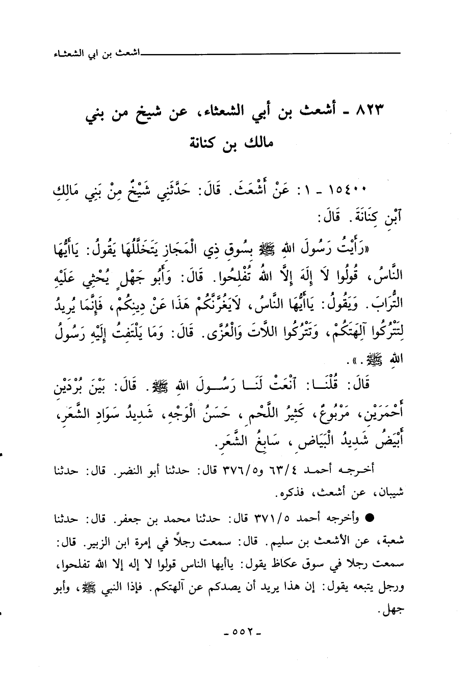 وأخرجه أحمد ٥/ ٣٧١ (٢٣٥٣٨) قال: حدَّثنا محمد بن جعفر، قال: حدَّثنا شعبة، عن الأشعث بن سليم , قال: سَمِعتُ رجلاً في إمرة ابن الزبير, قال: سَمِعتُ رجلا في سوق عكاظ يقول: يا أيها الناس قولوا لا إله إلا اللهِ تفلحوا، ورجل يتبعه يقول: إن هذا يريد أن يصدكم عن آلهتكم. فإذا النبي صلى الله عليه وسلم، وأبو جهل.