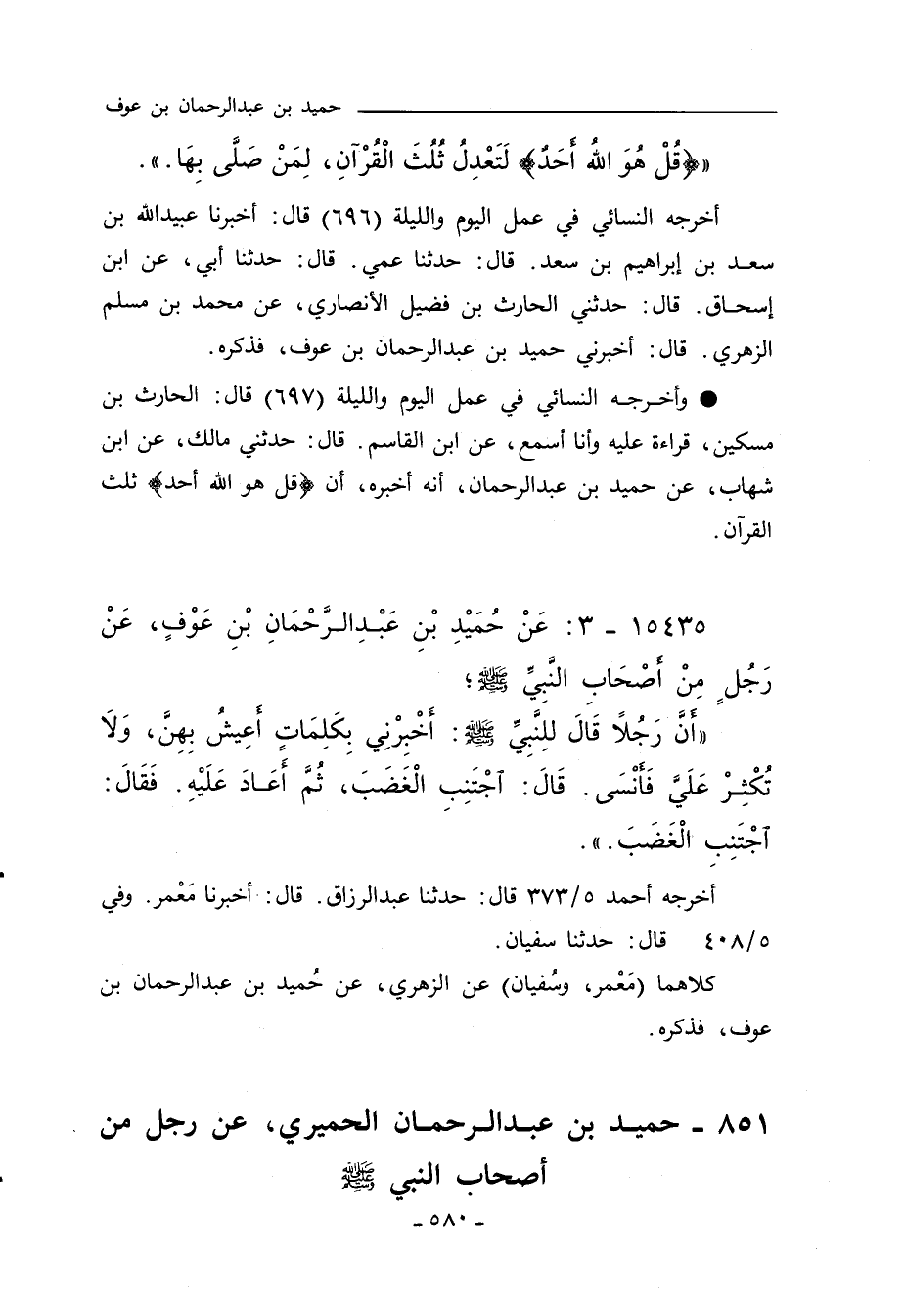 ١٥٤٣٥ - عَنْ حُمَيْدِ بْنِ عَبْدِالرَّحْمَانِ بْنِ عَوْفٍ، عَنْ رَجُلٍ مِنْ أصْحَابِ النَّبِي؛