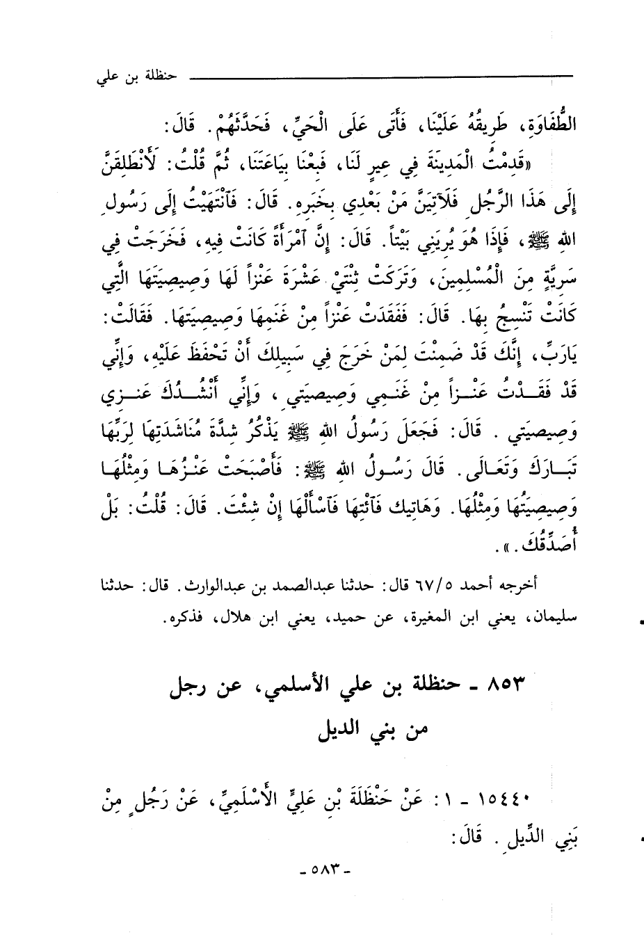 ١٥٤٤٠ - عَنْ حَنْظَلَةَ بْنِ عَلِىٍّ الأَسْلَمِىِّ عَنْ رَجُلٍ مِنْ بَنِى الدِّيلِ قَالَ: