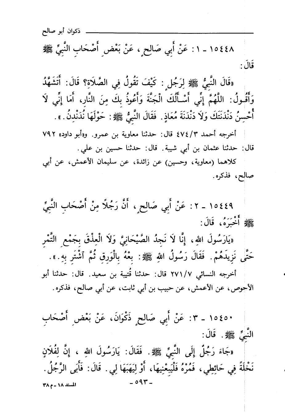 ١٥٤٥٠ - عَنْ أَبِي صَالِحٍ ذَكْوَانَ، عَنْ بَعْضِ أَصْحَاب النَّبِي صلى الله عليه وسلم. قَالَ: