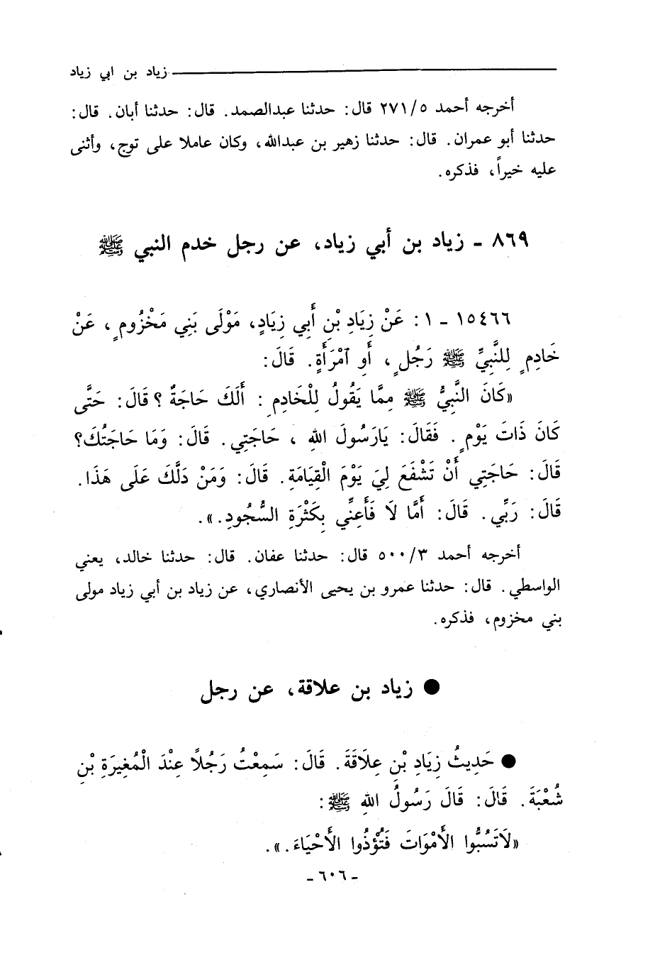 ١٥٤٦٦ - عَنْ زيَادِ بْنِ أبِي زِيَادٍ، مَوْلَى بَنِي مَخْزُومٍ، عَنْ خَادِمً لِلنَّبِيِّ صلى الله عليه وسلم، أَوِ امْرَأةٍ. قَالَ: