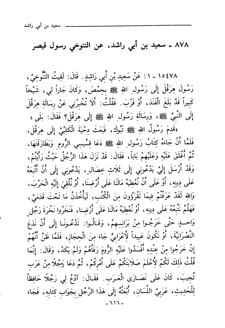 سعيد بن أبي راشد، عن التنوخي رسول قيصر