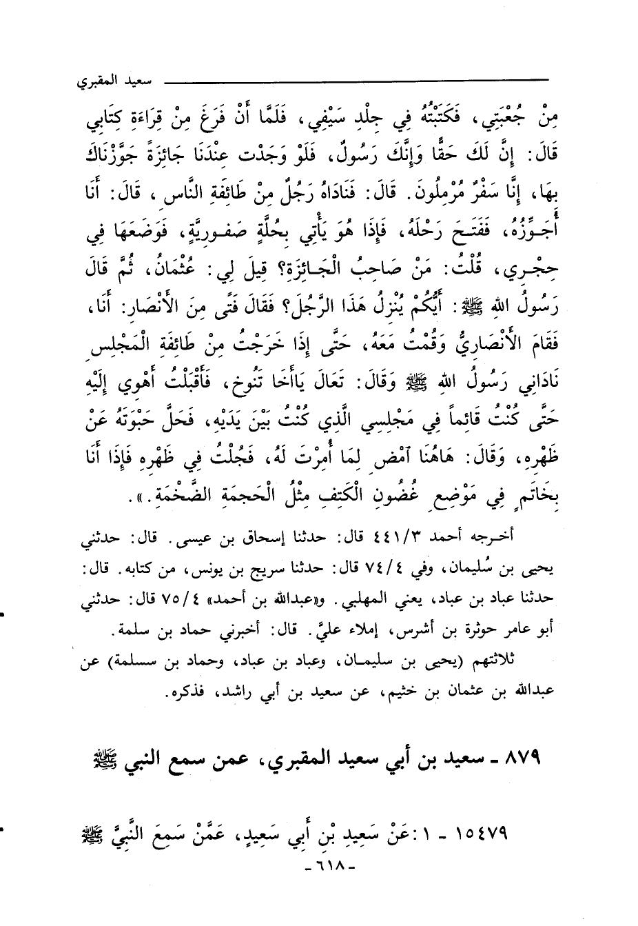 ١٥٤٧٩ - عَنْ سَعِيدِ بْنِ أبِي سَعِيدٍ، عَمَّنْ سَمِعَ النَبِيَّ صلى الله عليه وسلم