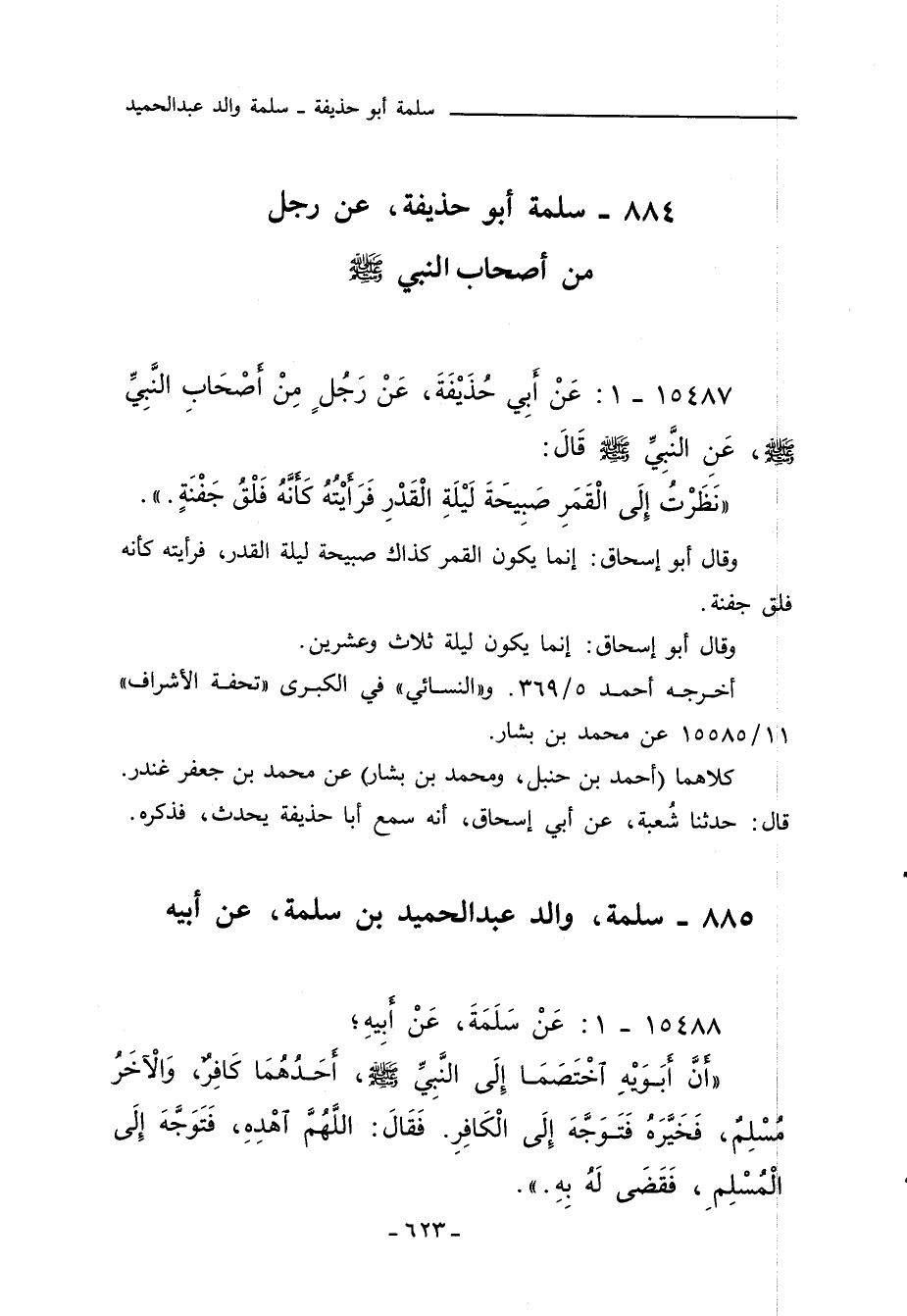 ١٥٤٨٨ - عَنْ سَلَمَةَ، عَنْ أَبِيهِ؛