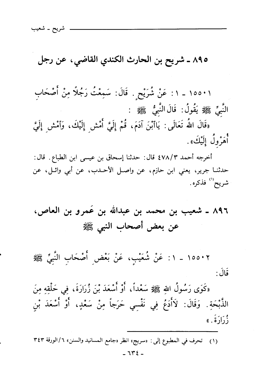 ١٥٥٠١ - عَنْ شُرَيْحٍ, قال: سَمِعْتُ رَجُلاً مِنْ أصْحَابِ النَّبِي صلى الله عليه وسلم يَقُولُ: قَالَ النَّبيُّ صلى الله عليه وسلم: