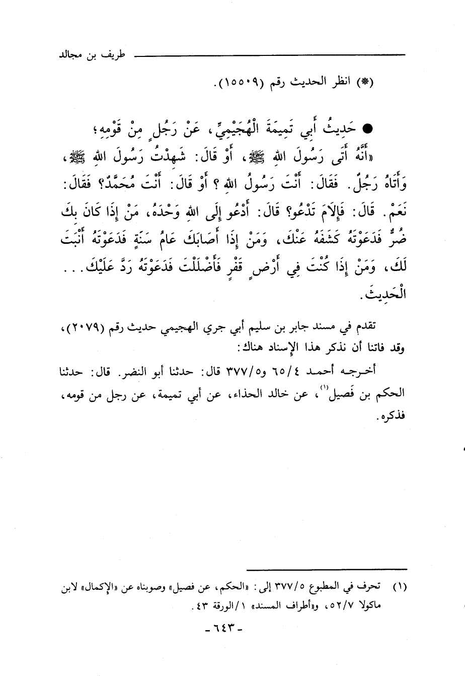 تقدم في مسند جابر بن سليم أبي جري الهجيمى حديث رقم (٢٠٧٩).