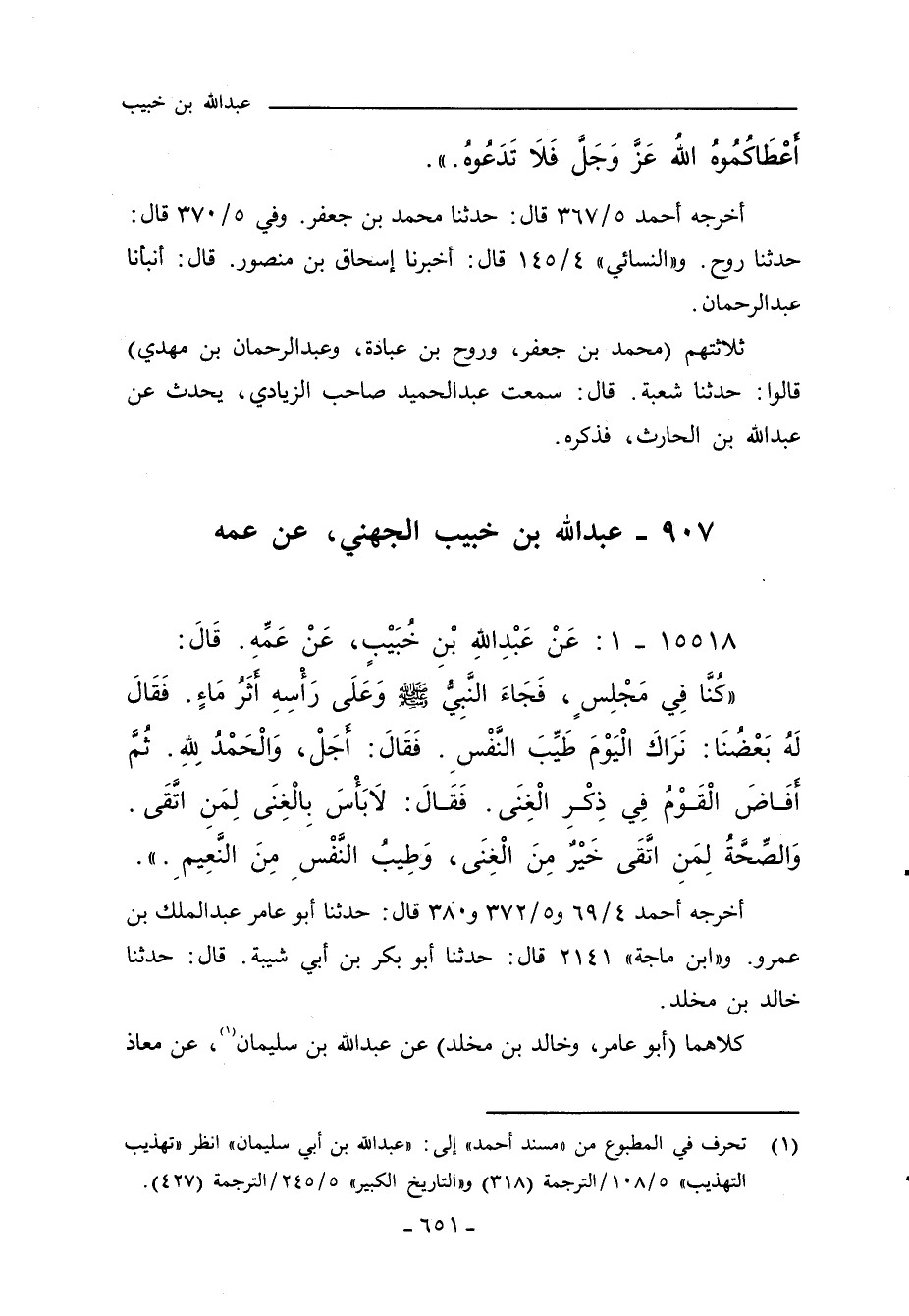 ثلاثتهم (أبو عامر، وسليمان , وخالد بن مخلد) عن عبد اللهِ بن سليمان، عن معاذ
