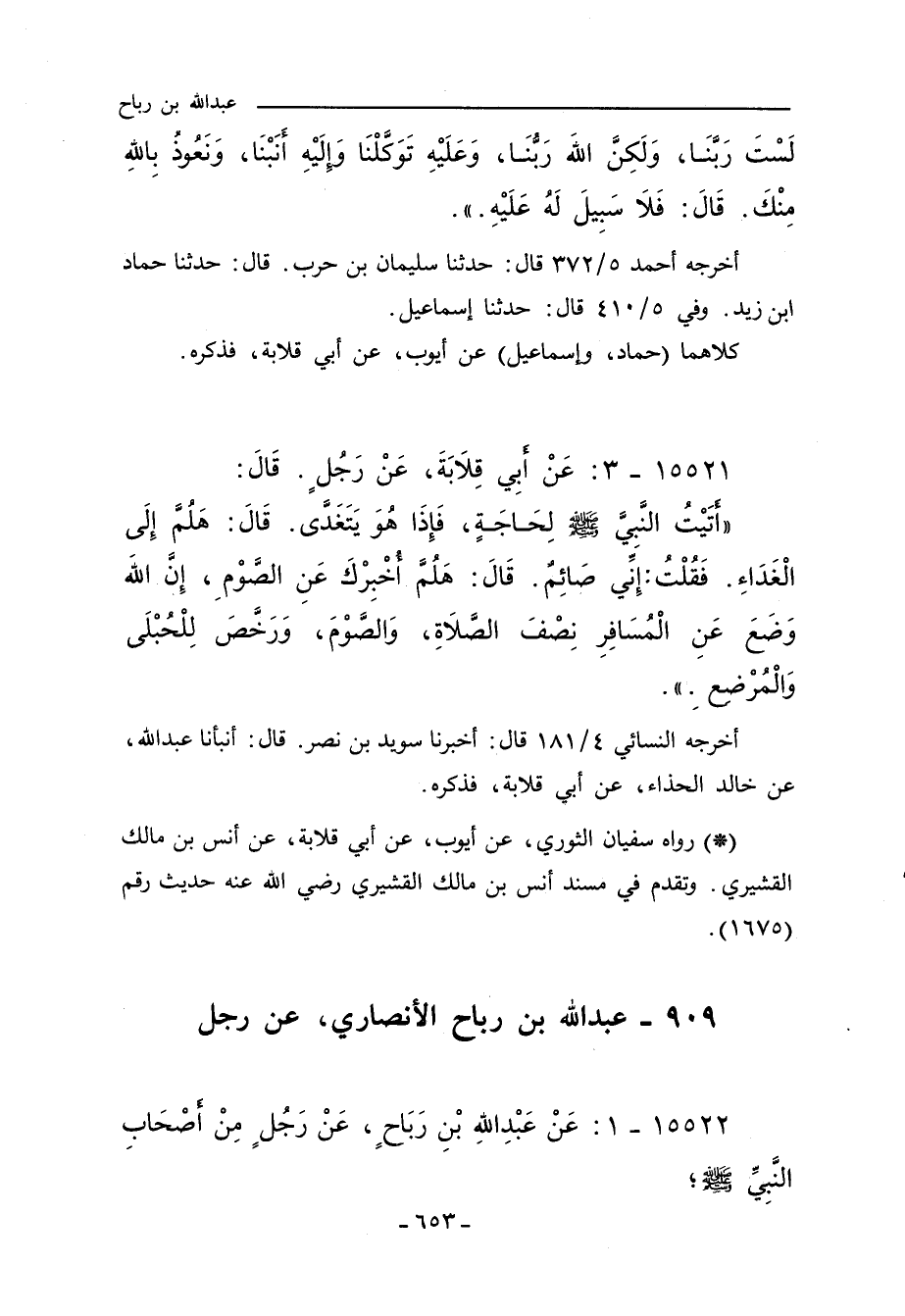 أخرجه أحمد ٥/ ٣٧٢ (٢٣٥٤٦) قال: حدَّثنا سليمان بن حرب، قال: حدَّثنا حماد بن زيد. وفي ٥/ ٤١٠ (٢٣٨٨٣) قال: حدَّثنا إسماعيل.