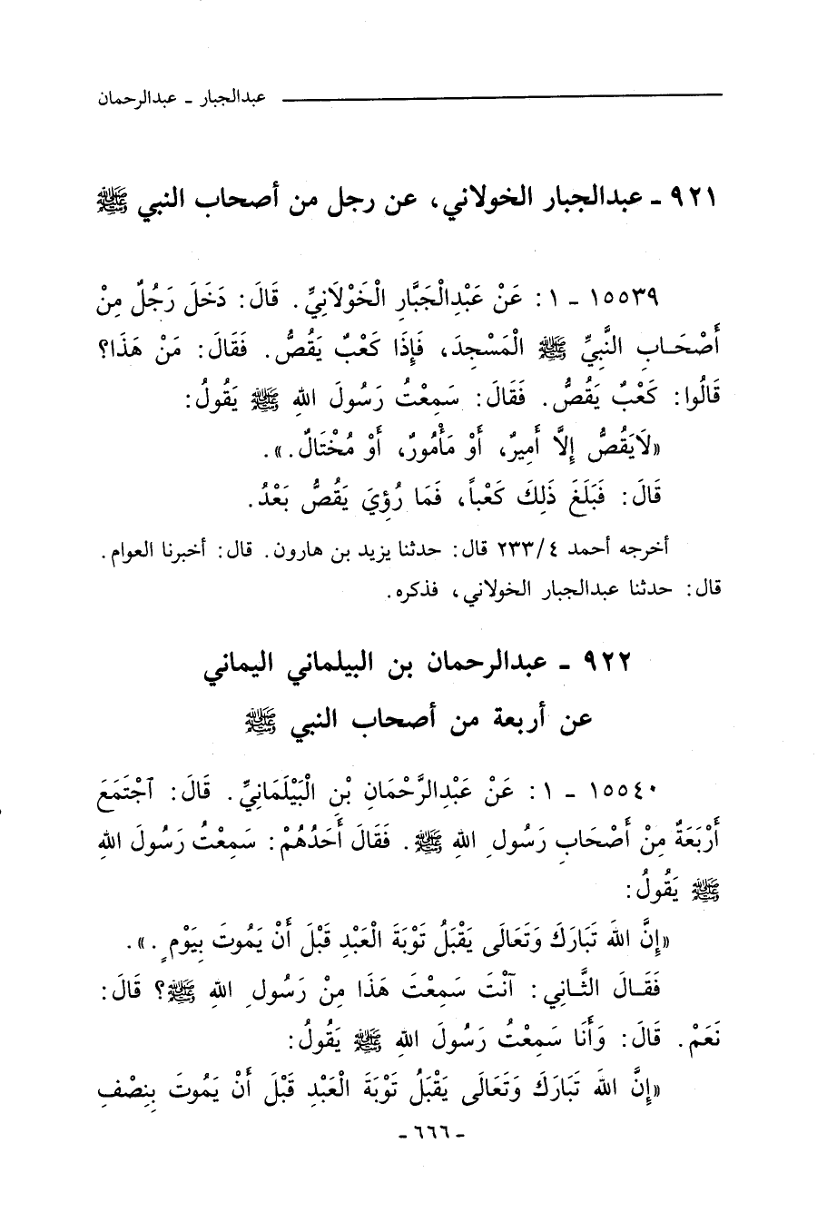 ٩٢١ - عبد الجبار الخولاني، عن رجل من أصحاب النبي صلى الله عليه وسلم