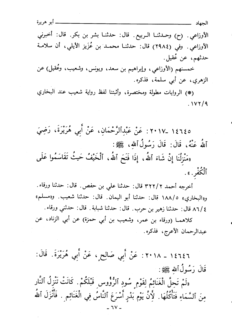 ١٤٦٤٥ - عَنْ عَبْدِ الرَّحْمَنِ عَنْ أَبِي هُرَيْرَةَ رضى الله عنه قَالَ: قَالَ رَسُولُ اللهِ صلى الله عليه وسلم