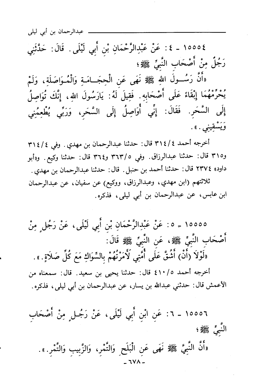 ١٥٥٥٥ - عَنْ عَبْدِ الرَّحْمَنِ بْنِ أَبِى لَيْلَى عَنْ رَجُلٍ مِنْ أَصْحَابِ النَّبِيِّ صلى الله عليه وسلم عَنِ النَّبِيِّ صلى الله عليه وسلم قَالَ: