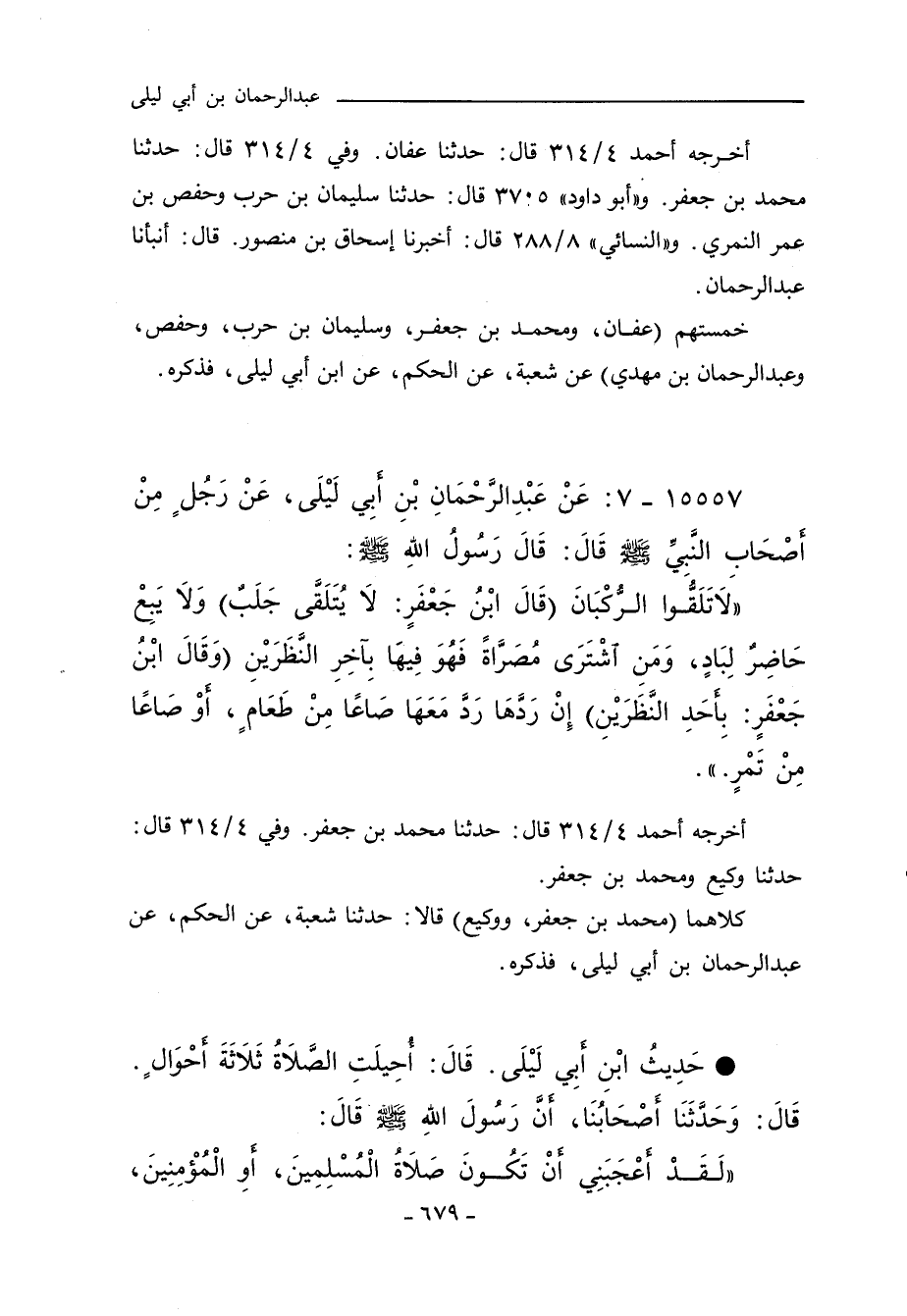 ١٥٥٥٧ - عَنْ عَبْدِ الرَّحْمَنِ بْنِ أَبِى لَيْلَى قَالَ ابْنُ جَعْفَرٍ سَمِعْتُ ابْنَ أَبِى لَيْلَى عَنْ رَجُلٍ مِنْ أَصْحَابِ النَّبِيِّ صلى الله عليه وسلم قَالَ: قَالَ رَسُولُ اللهِ صلى الله عليه وسلم
