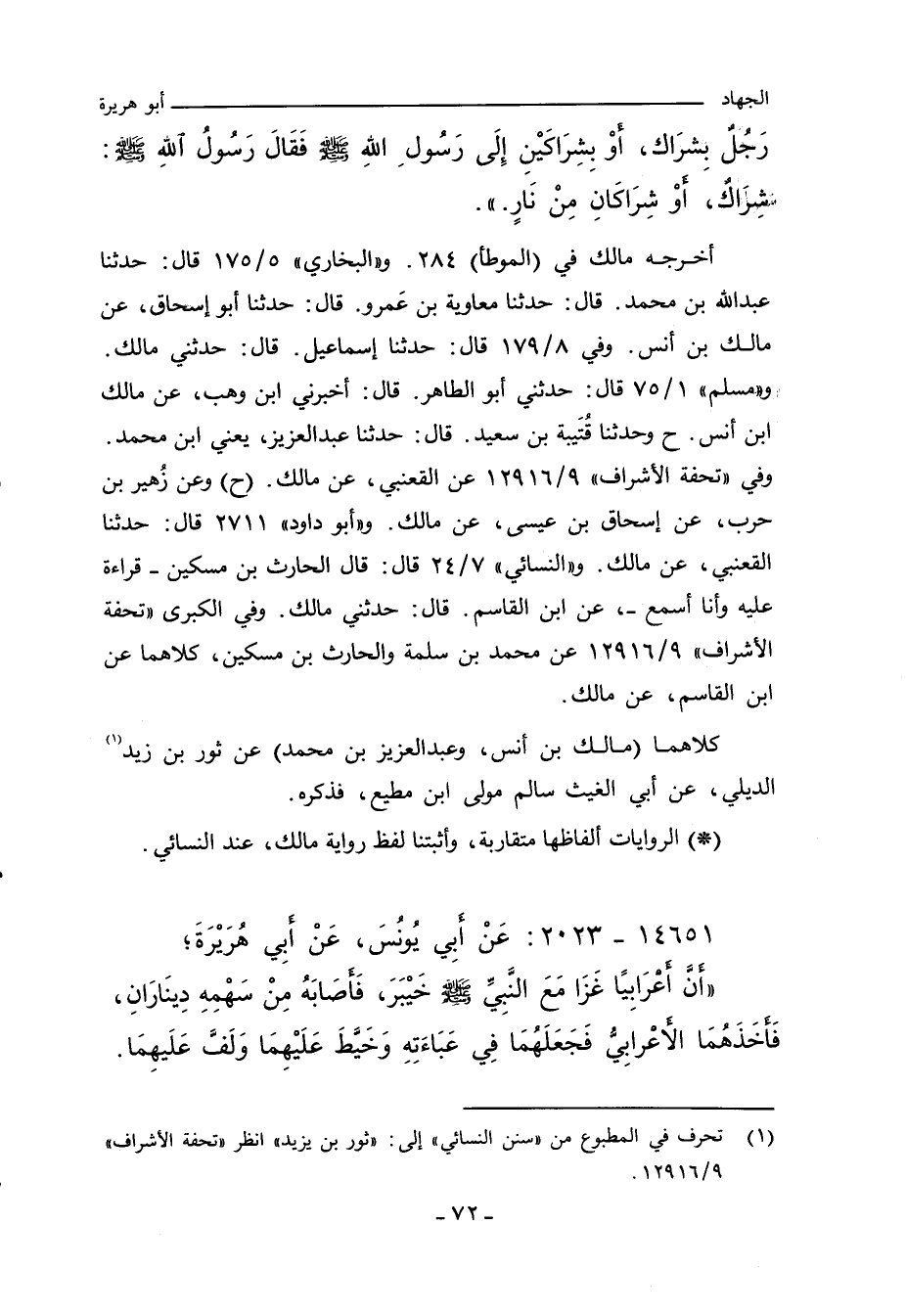 أخرجه مالك في (الموطأ) ٢٨٤. و"البُخاري" ٥/ ١٧٥ (٤٢٣٤) قال: حدثنا عبد الله بن محمد , قال: حدثنا معاوية بن عَمرو, قال: حدثنا أبو إسحاق، عن مالك بن أنس. وفي ٨/ ١٧٩ (٦٧٠٧) قال: حدثنا إسماعيل , قال: حدثني مالك. و"مسلم" ١/ ٧٥ قال: حدثني أبو الطاهر, قال: أخبرني ابن وهب، عن مالك بن أنس. ح، حدثنا قُتَيبة بن سعيد, قال: حدثنا عبد العزيز، يعني ابن محمد. وفي " تحفة الأشراف ((٩/ ١٢٩١٦ عن القعنبي، عن مالك. (ح) وعن زُهير بن حرب، عن إسحاق بن عيسى، عن مالك. و"أبو داود" ٢٧١١ قال: حدثنا القعني، عن مالك. و"النَّسائي" ٧/ ٢٤ وفي "الكبرى" ٤٧٥٠ قال: قال الحارث بن مسكين - قراءة عليه وأنا أسمع -، عن ابن القاسم , قال: حدثني مالك. وفي "الكبرى" ٨٧١٠ قال: أخبرنا محمد بن سلمة والحارث بن مسكين، كلاهما عن ابن القاسم، عن مالك.
