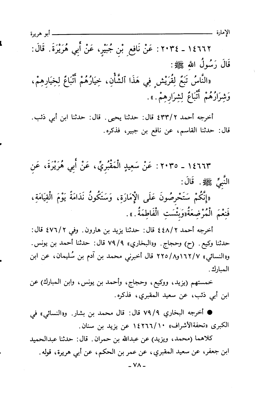 النَّاسُ تَبَعٌ لِقُرَيْشٍ فِى هَذَا الشَّأْنِ خِيَارُهُمْ أَتْبَاعٌ لِخِيَارِهِمْ وَشِرَارُهُمْ أَتْبَاعٌ لِشِرَارِهِمْ.