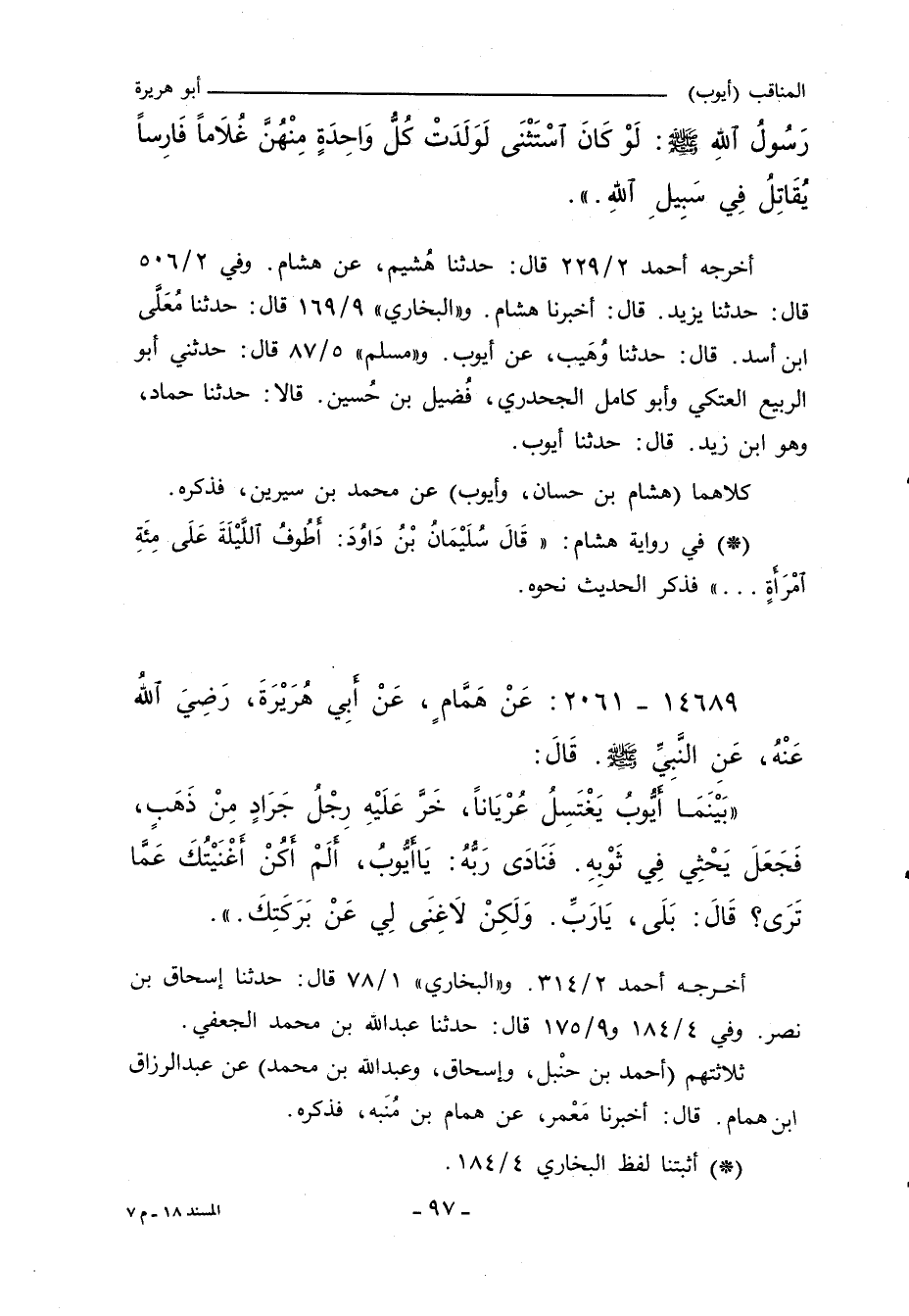 أخرجه أحمد ٢/ ٢٢٩ (٧١٣٧) قال: حدَّثنا هُشيم، عن هشام. وفي ٢/ ٥٠٦ (١٠٥٨٨) قال: حدَّثنا يزيد، قال: أخبرنا هشام. و"البُخاري" ٩/ ١٦٩ (٧٤٦٩) قال: حدَّثنا مُعَلَى ابن أسد، قال: حدَّثنا وُهَيب، عن أيوب. و"مسلم" ٥/ ٨٧ قال: حدثني أبو الربيع العتكي وأبو كامل الجحدري، فُضيل بن حُسين. قالا: حدَّثنا حماد، وهو ابن زيد، قال: حدَّثنا أيوب.